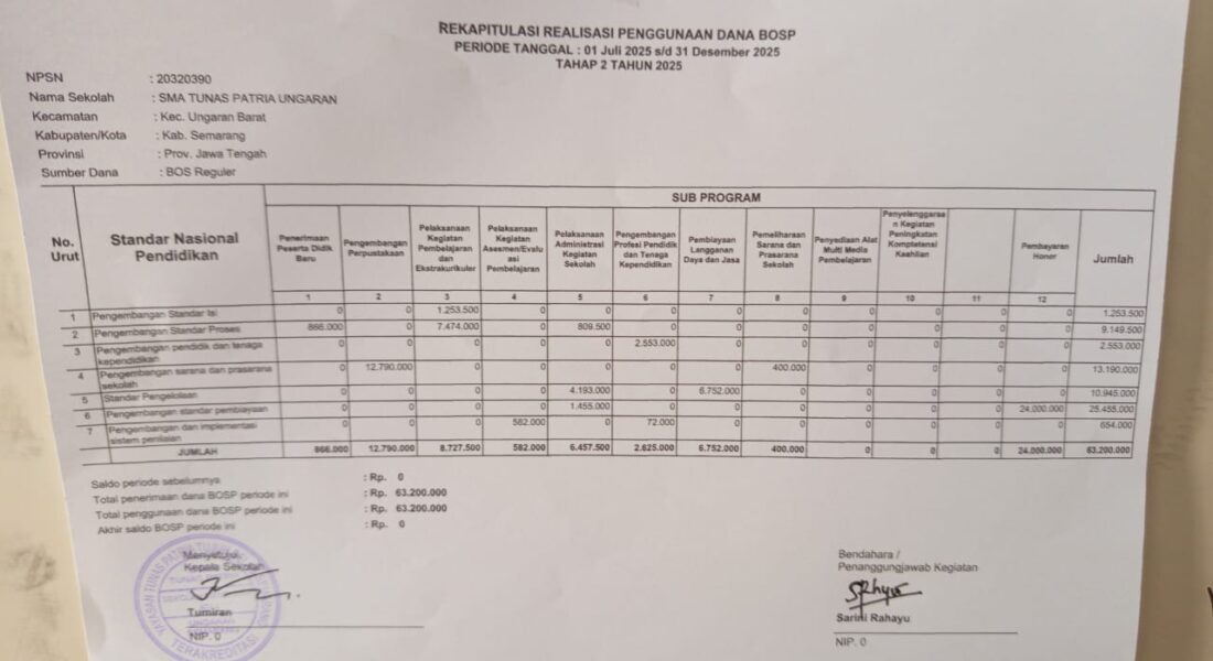 REKAPITULASI REALISASI PENGGUNAAN DANA BOSP TAHAP 2